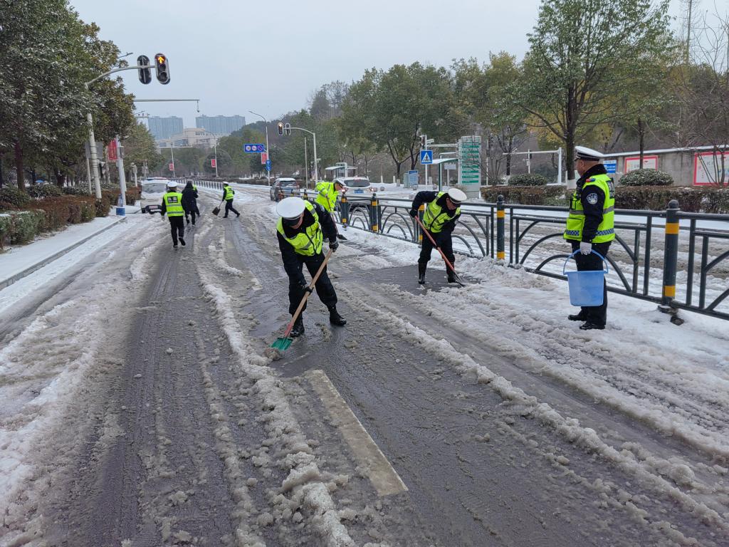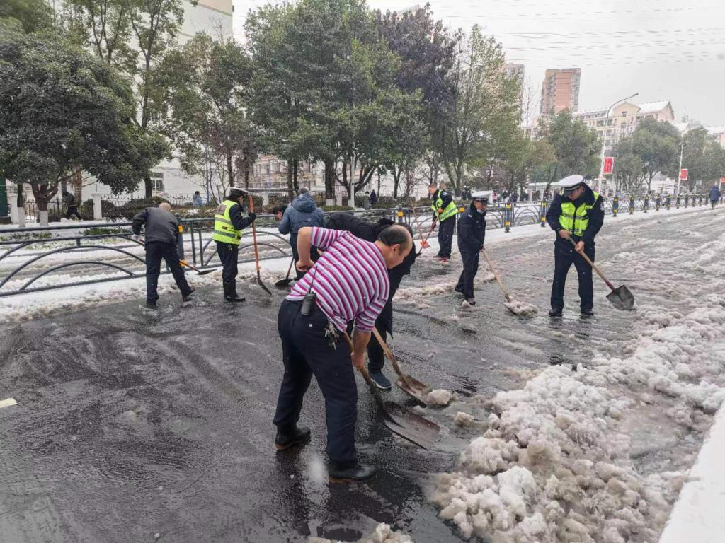 另一方面开展撒盐融冰及人工铲雪行动,保卫人员携带铁锹等工具快速清理道路积雪,消除交通安全隐患。