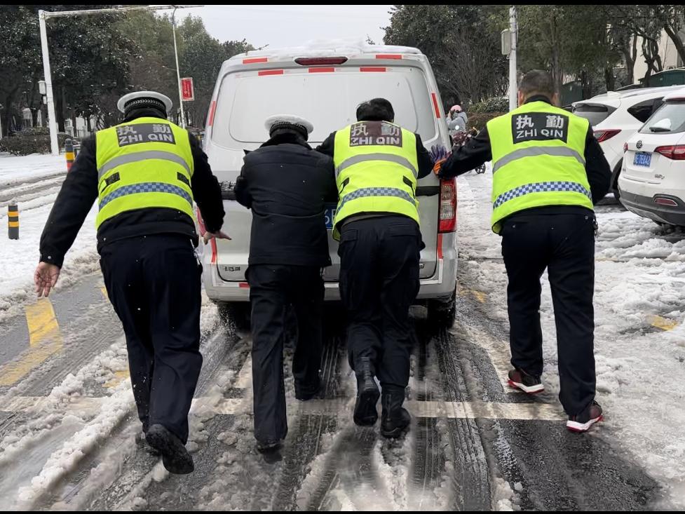 此外还加强道路抢险施救力度,采取牵引拖离、人力推车等多种方式,积极帮助受困车辆脱困。