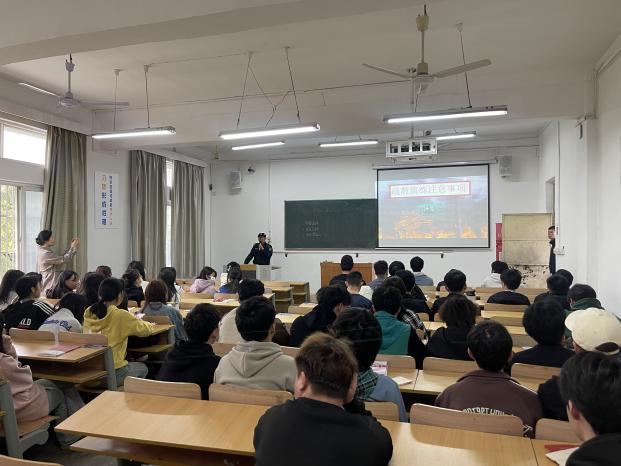 演练开始前,保卫处工作人员对参与演练的师生进行了消防安全知识及疏散逃生注意事项的培训。
