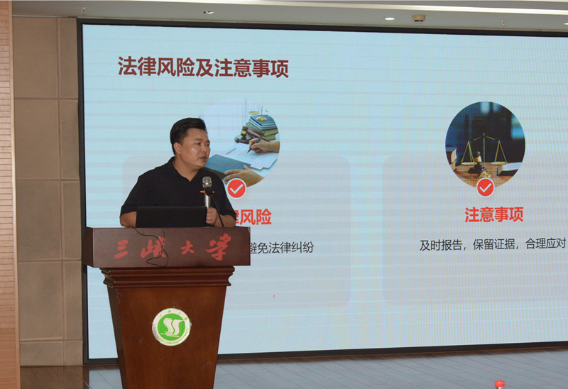 会上,学校法律顾问朱明杰律师受邀对保卫人员进行了法律知识专题培训,包括学生意外事故处理、案件调查基本方法、个人权益保护、校园突发事件处置、校园秩序维护等方面专业知识,为保卫人员依法依规处置警情、维护师生利益等实际工作提供了有益指导。