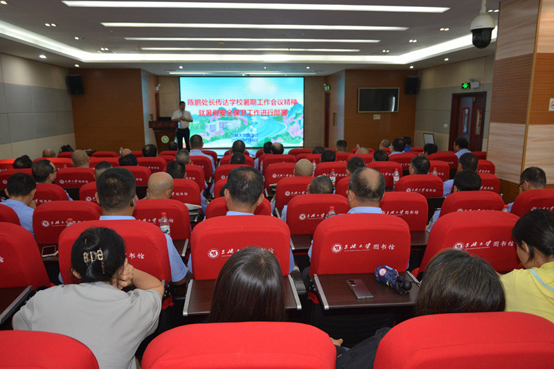 7月4日,保卫处召开职工大会,通报各业务科室上半年目标任务完成情况,对暑期安全保卫工作进行部署。