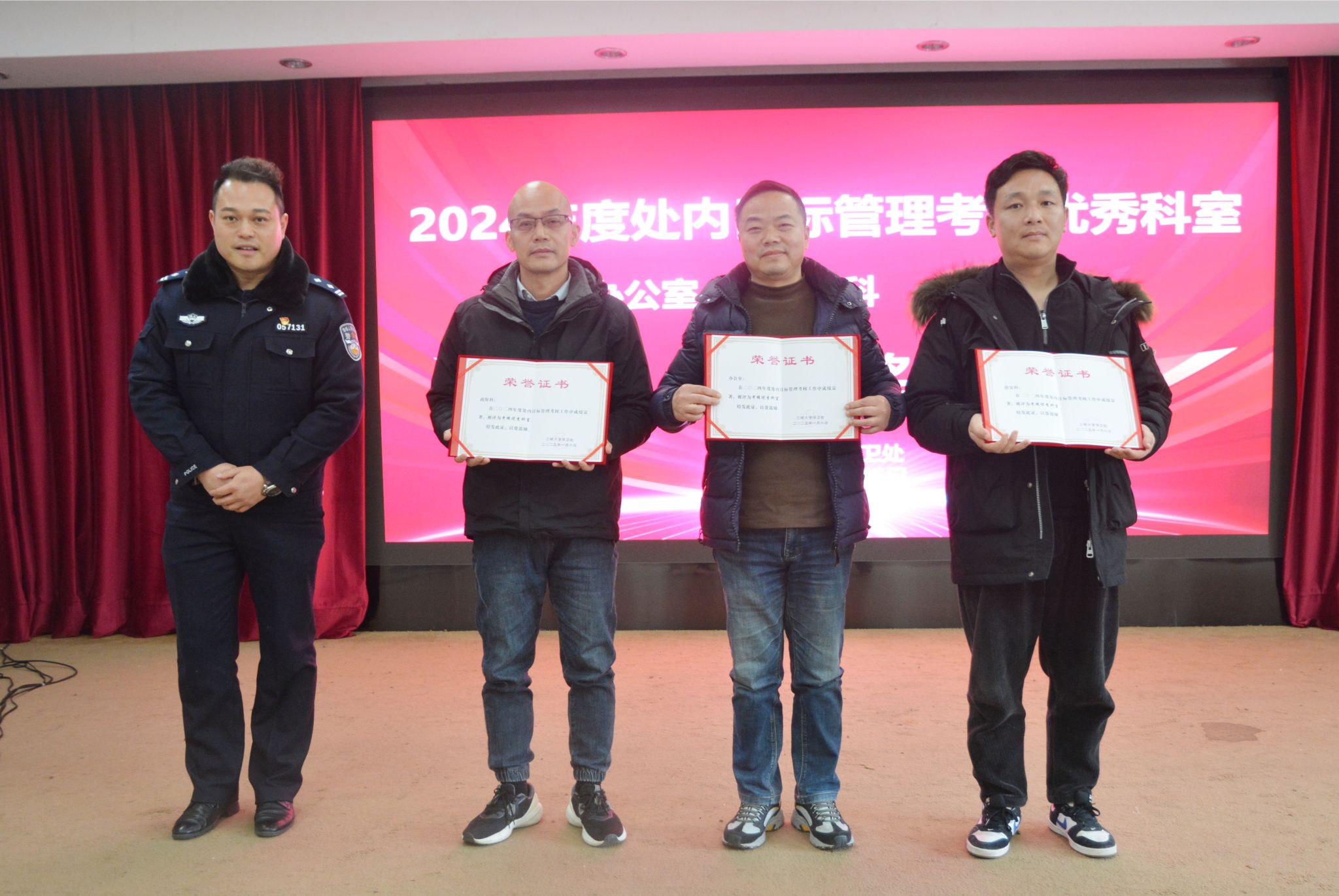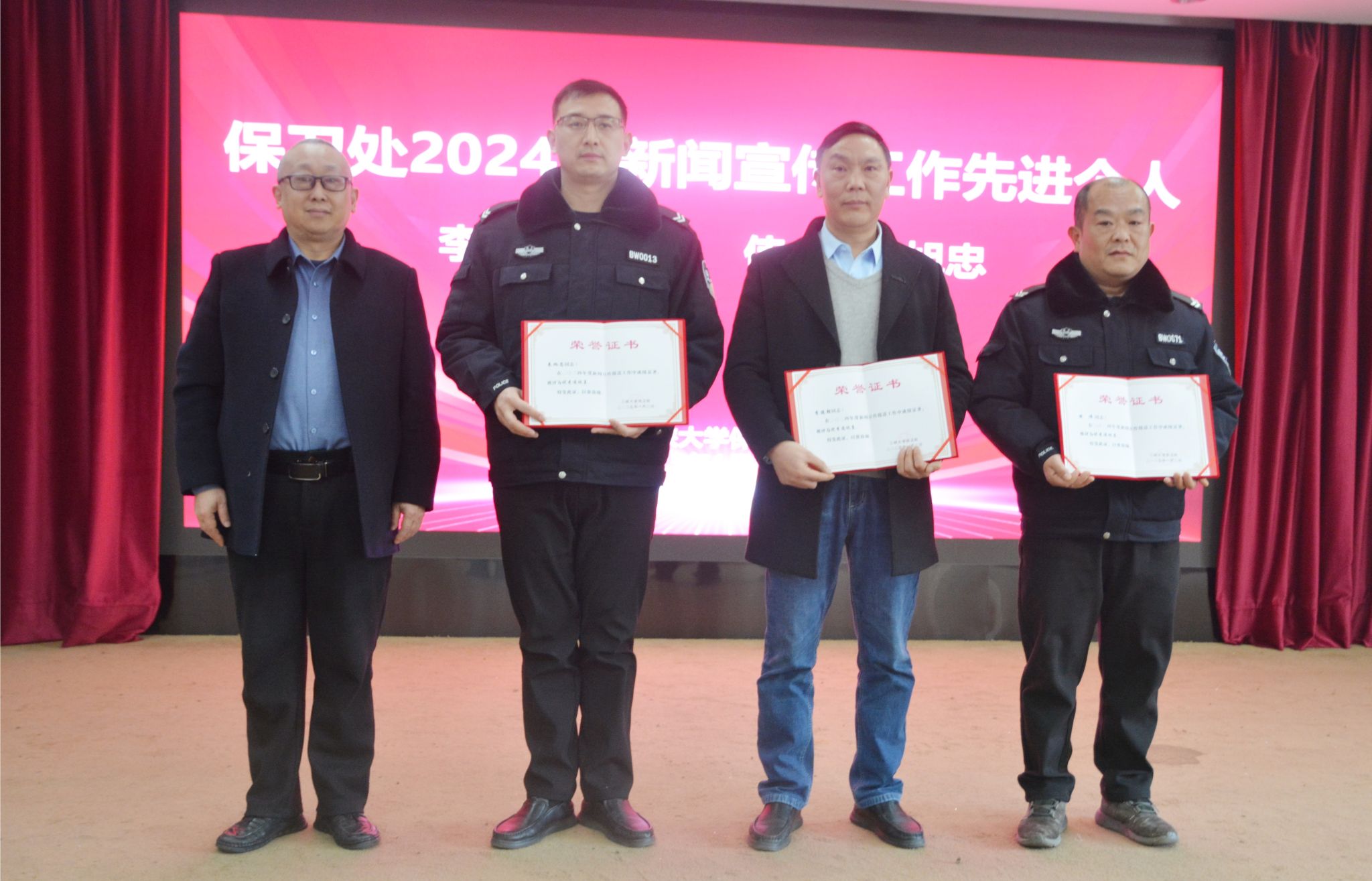 会议播放微视频《我是谁》,记录了保卫人员在白天黑夜、酷暑严冬中的工作点滴和艰辛付出,展现了保卫人员服务师生的初心使命和默默奉献。副处长唐洪伟宣读保卫处年度目标考核、年度新闻宣传工作表彰文件,对考核优秀科室、优秀宣传通讯员颁发奖状;副处长杜玉宝就寒假轮休期间的安全防范工作进行安排部署并强调工作纪律。