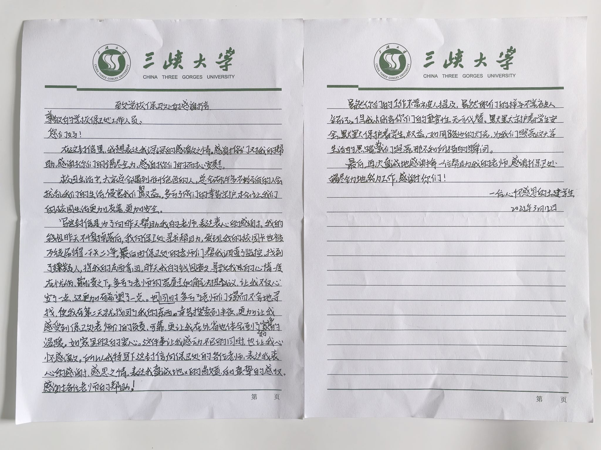 这就是保卫处日常工作的缩影。据统计,过去的一年保卫处共接到师生求助175起;为师生提供安全服务837次;寻回师生遗失物56起,挽回经济损失10万余元。这些数字是保卫处“师生安全无小事”工作原则的真实体现。正如感谢信中所写:“默默守护着学生安全,默默保护着学生权益,如同路边的灯光,为我们的大学生活增加了一份温暖。”