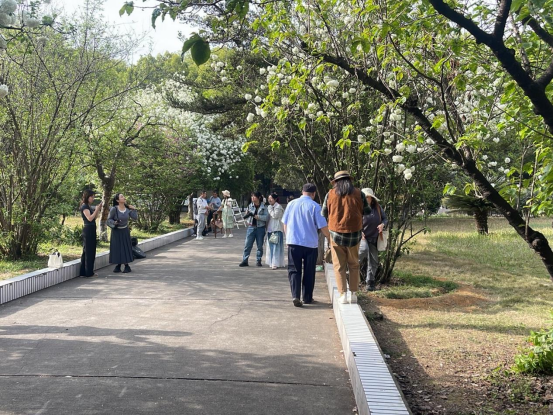 “请大家拍照时不要攀折花朵……”“不要踩踏草坪、文明赏花……”;身着制服的保卫处工作人员,一边巡逻一边亲切地提醒市民。“保安大哥不仅帮忙拍合影,还给我讲了绣球花的品种知识,太暖心了!”来参观的市民笑着说。