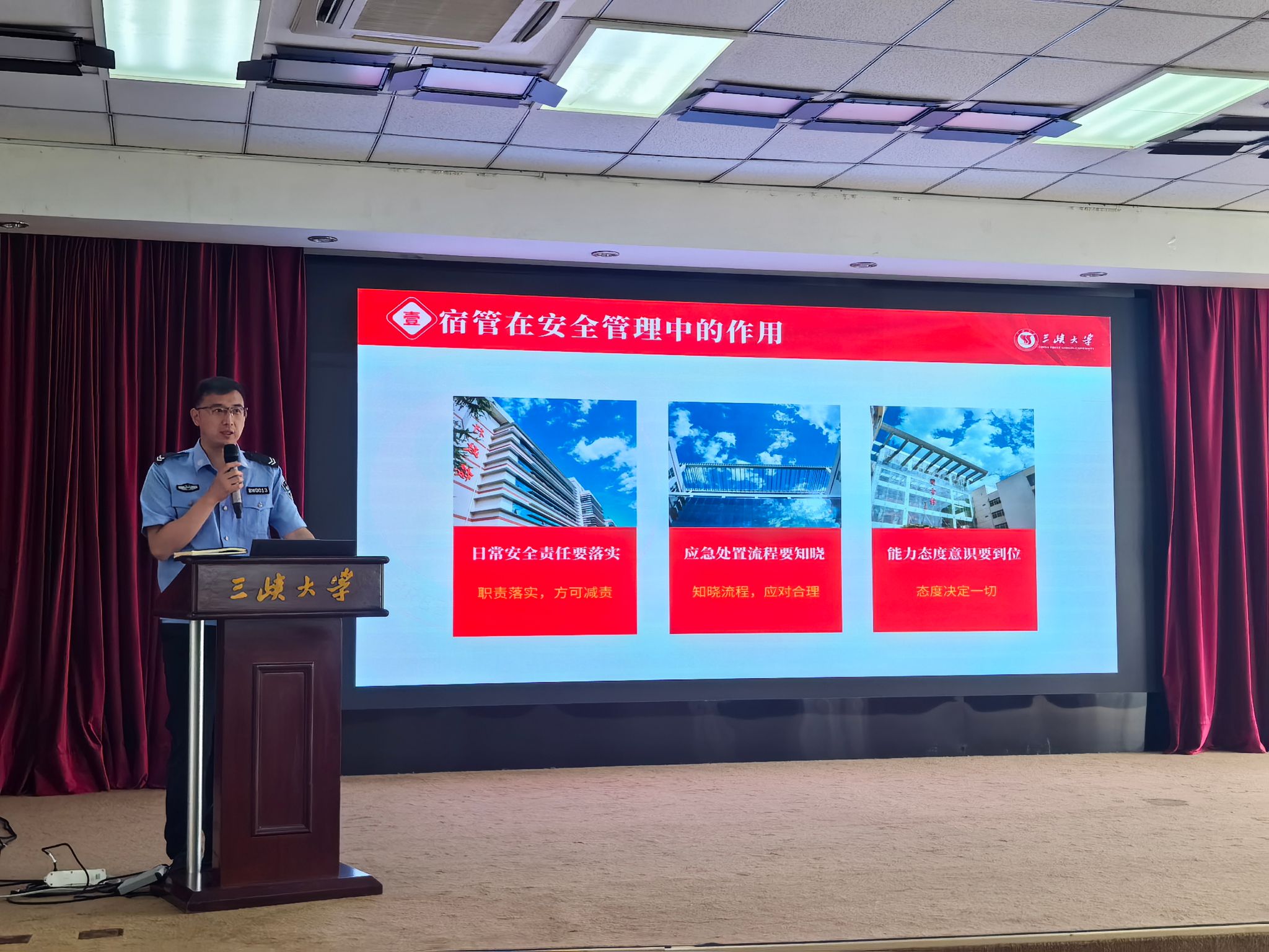 与此同时,保卫处在学生处与后勤保障服务部联合开展的“寓”见美好·“宿”造温馨——社区服务之星评选活动现场,针对宿管和寝室长开展专项安全教育。内容涵盖突发情况应急处置、宿舍安全隐患排查等多个方面,旨在提升宿管面对突发情况时的处置能力。此外,活动还引导寝室长发挥带头作用,营造良好的宿舍氛围,为学生打造舒适温馨的生活环境。