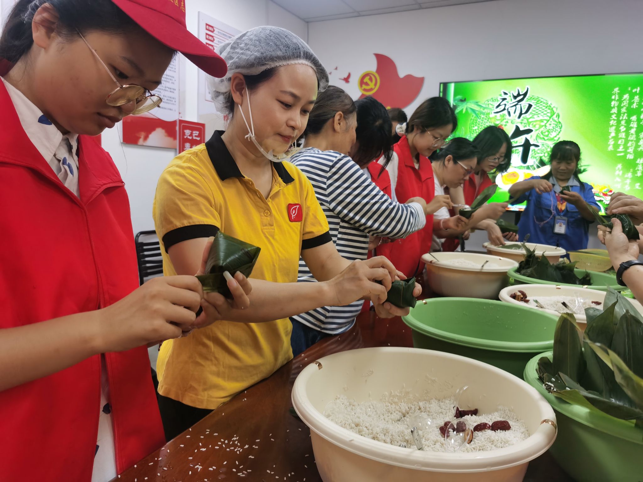 上午,活动现场整齐的摆放着翠绿的粽叶、雪白的糯米、香甜的红枣,网格员、三峡大学的学生志愿者们与居民们围坐在一起包粽子、话家常。“先把粽叶卷成漏斗状,再填米压实……”有经验的阿姨们手把手教志愿者们包粽子,欢声笑语中,一个个棱角分明的粽子逐渐堆满。年过六旬的周奶奶笑着说:“现在年轻人很少包粽子了,社区组织这样的活动,既传承了老手艺,又让我们找回了过去的节日味道”。下午社区网格员将包好的一千余个粽子、盐蛋和艾草香囊送到辖区居民手中,传递节日的关怀与温暖。