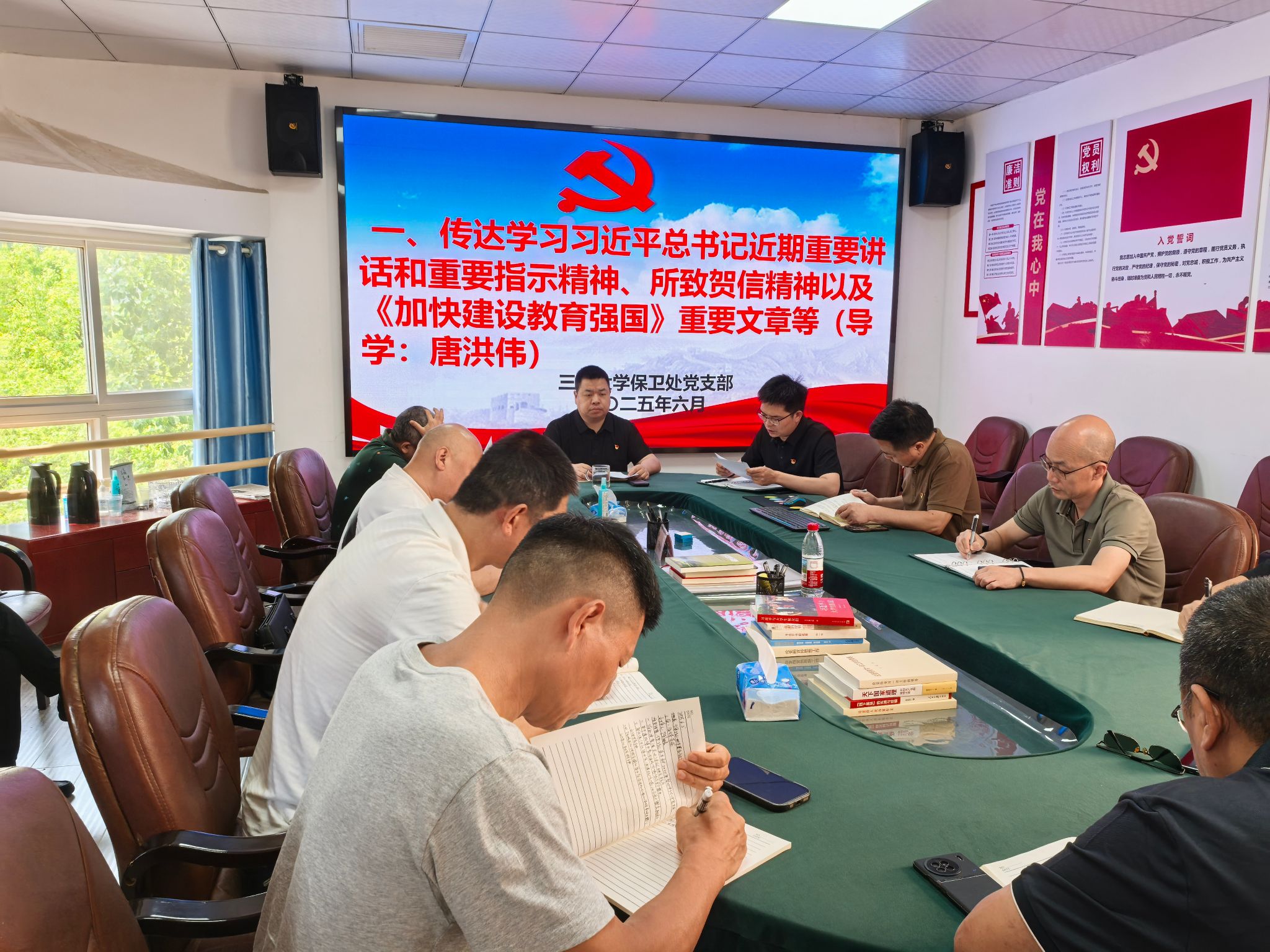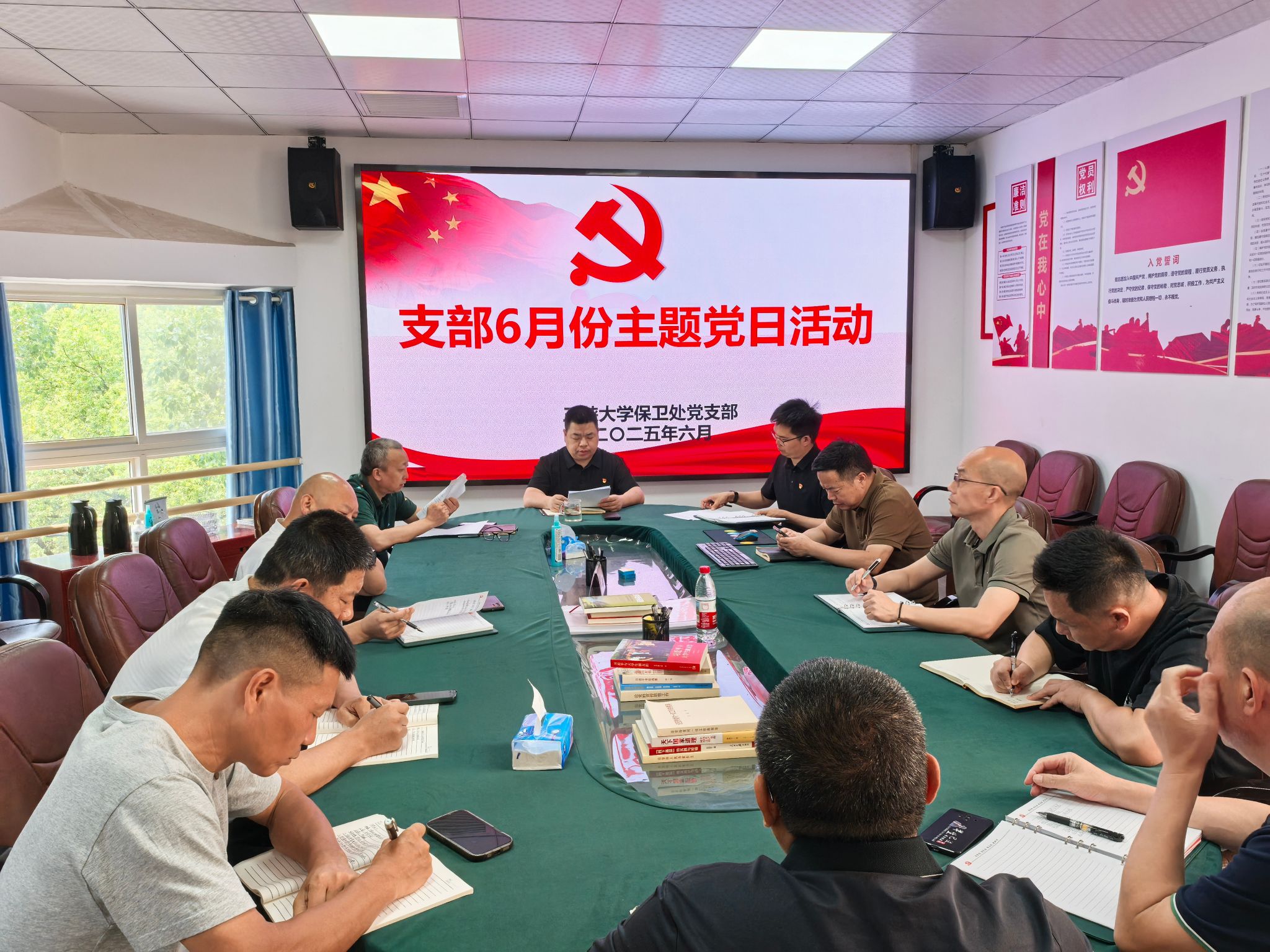6月23日,保卫处召开了“弘扬三大精神、锤炼过硬作风、激励担当作为”主题党日活动,旨在强化党员思想武装,提升团队凝聚力与战斗力,为校园安全保驾护航。支部全体党员参加,会议由支部书记陈鹏主持。